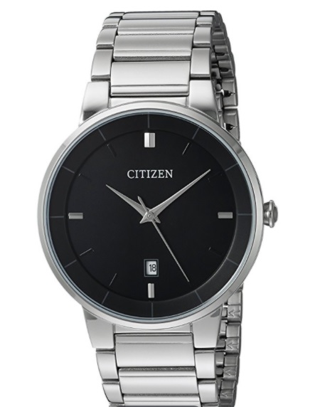 4. Men's Citizen Silver-Tone Stainless Steel Black Dial Quartz Watch