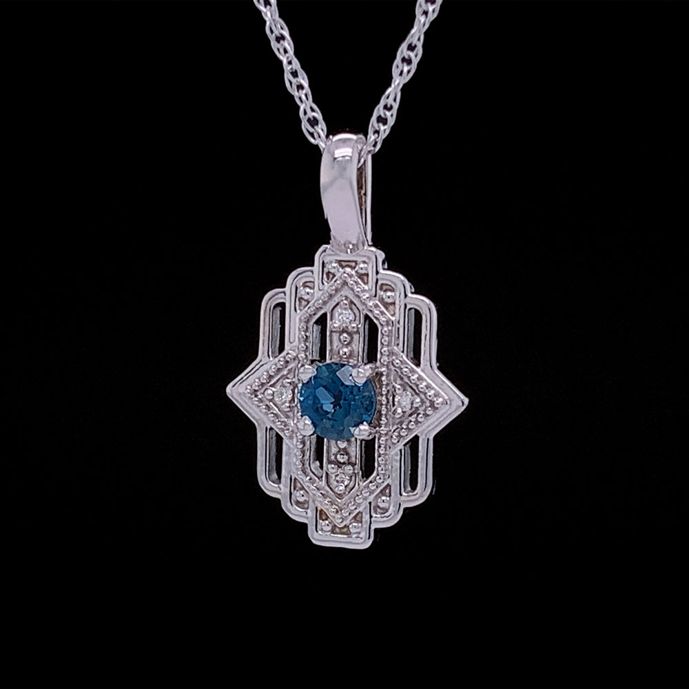 Art Deco Style London Blue Topaz And Diamond Pendant Geralds Jewelry Oak Harbor, WA
