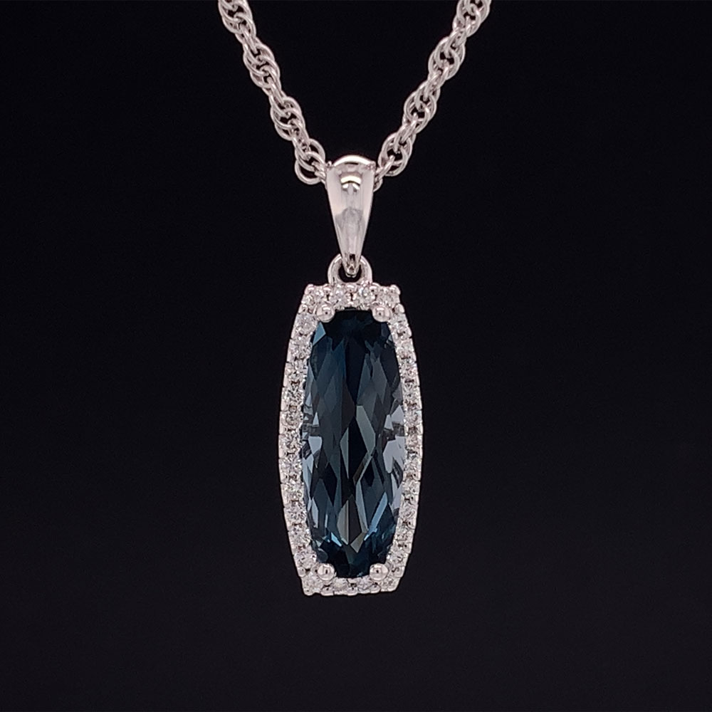 Fantasy Cut London Blue Topaz And Diamond Halo Pendant Geralds Jewelry Oak Harbor, WA