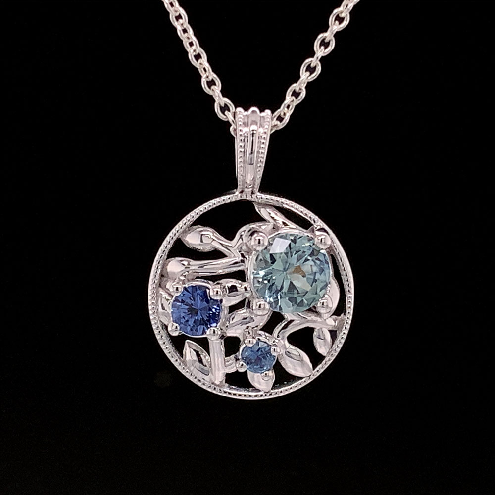 Olive Leaf Inspired Pendant With Natural Montana And Yogo Sapphires Geralds Jewelry Oak Harbor, WA