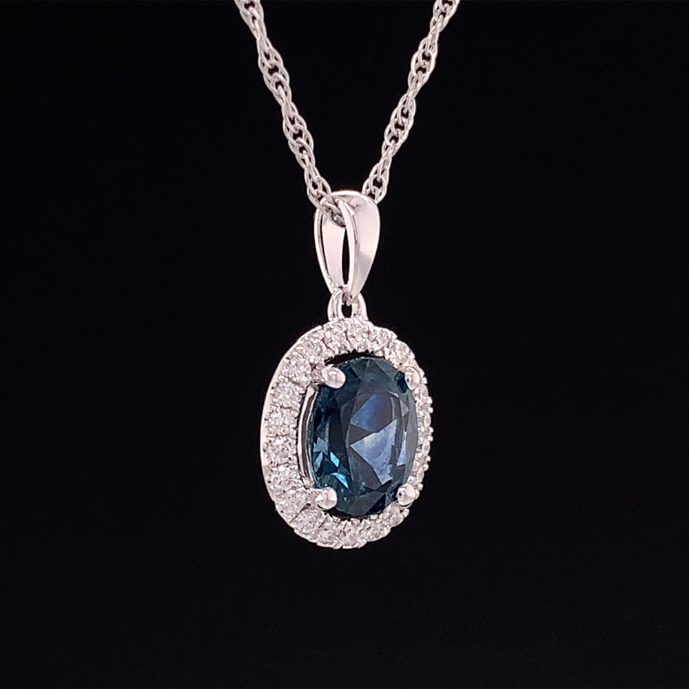 Oval Montana Sapphire And Diamond Halo Pendant Image 3 Geralds Jewelry Oak Harbor, WA