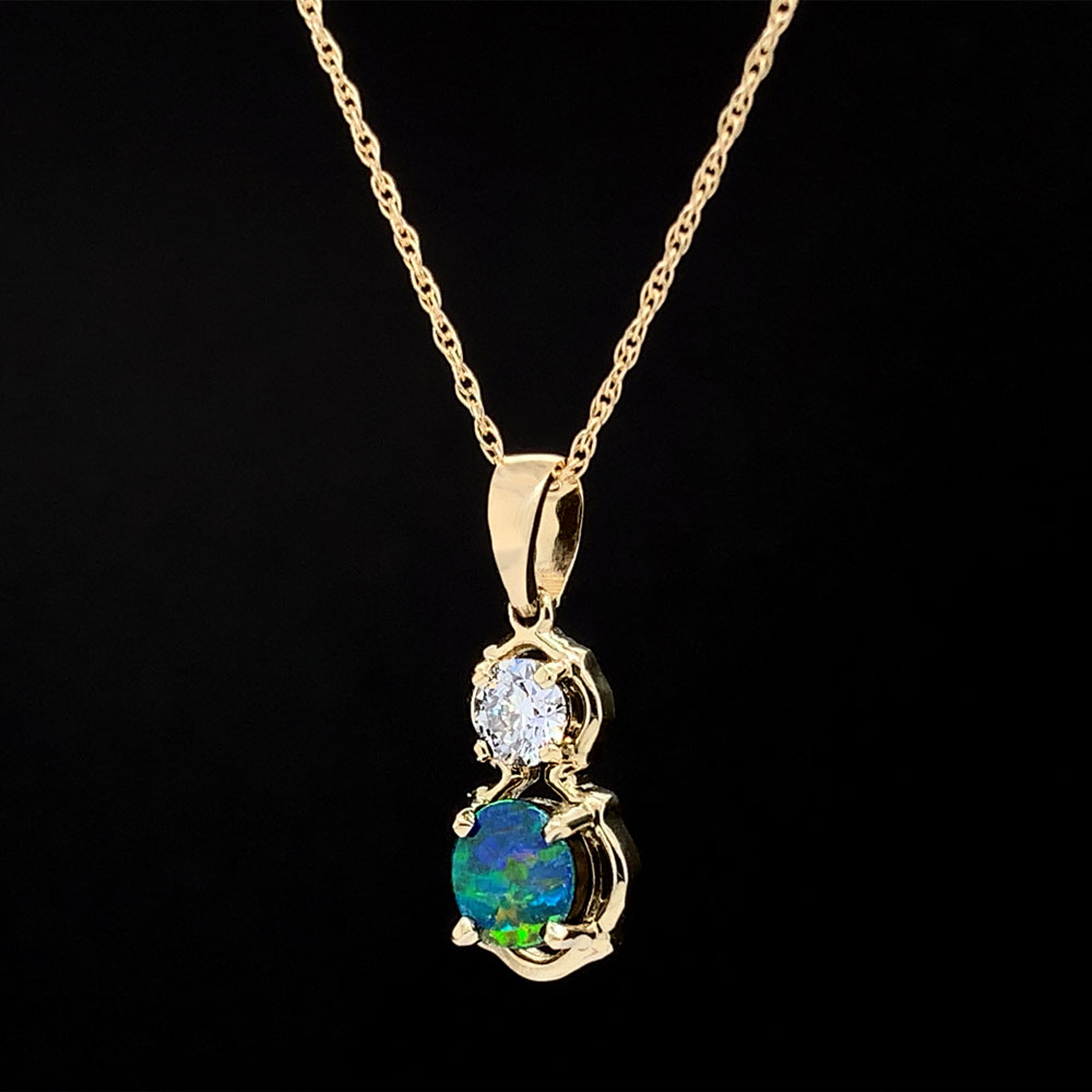 Yellow Gold Opal and Diamond Pendant Geralds Jewelry Oak Harbor, WA