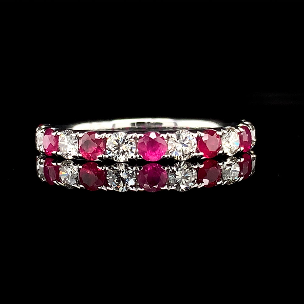 Alternating Natural Ruby and DIamond Thirteen Stone Ring Geralds Jewelry Oak Harbor, WA