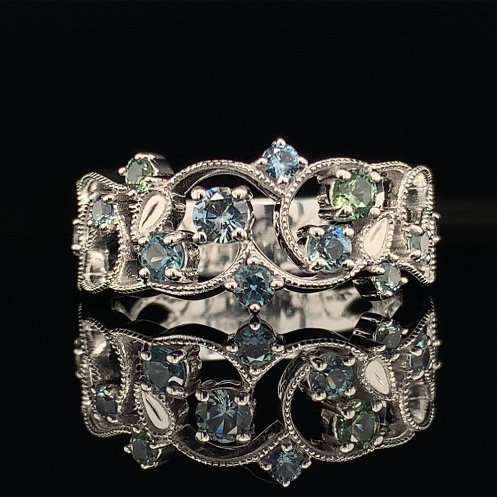 Montana Sapphire Filigree White Gold Ring Geralds Jewelry Oak Harbor, WA
