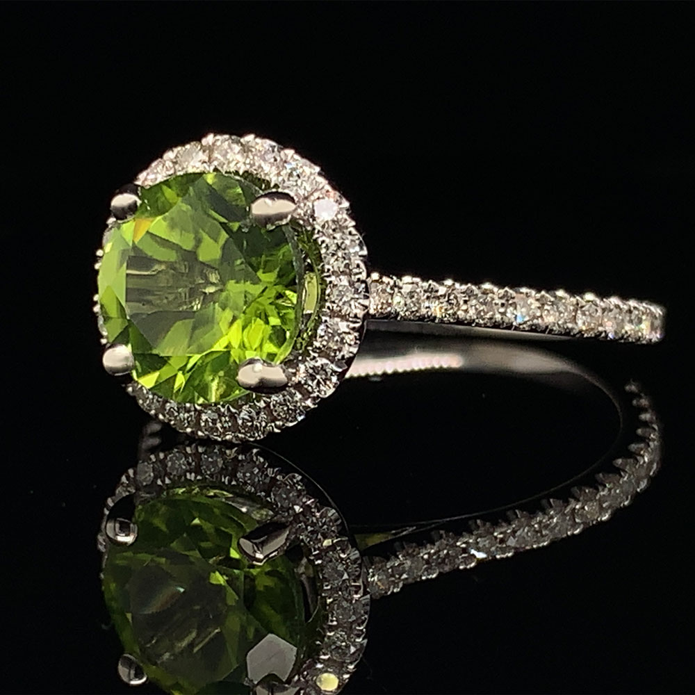 Peridot and Diamond Halo Ring Geralds Jewelry Oak Harbor, WA