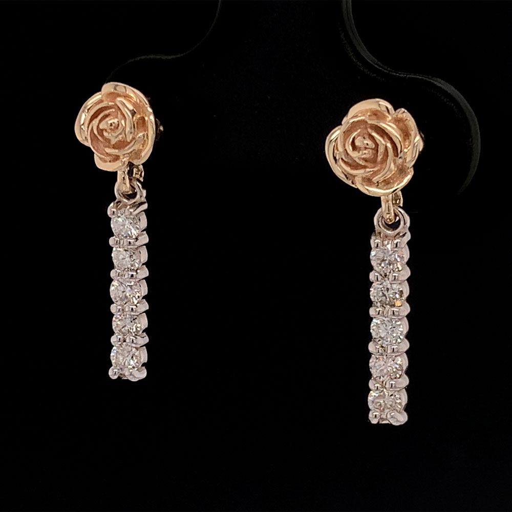 Two Tone Gold Rose and Diamond Earrings Geralds Jewelry Oak Harbor, WA