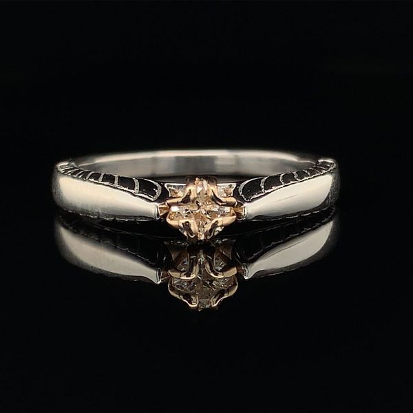Celebrate your love with a stunning silver engagement ring. Trendy and timeless, our sterling silver bands have a genuine diamond securely set in a 14K gold mounting.