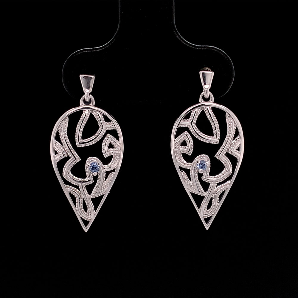Abstract Paisley Inspired Yogo Sapphire Earrings Geralds Jewelry Oak Harbor, WA